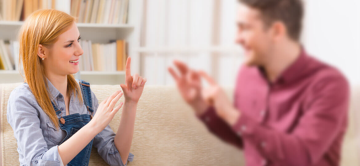 Fach-Dienst für hör-behinderte Menschen im Arbeits-Leben, die sich mit Gebärden-Sprache mitteilen